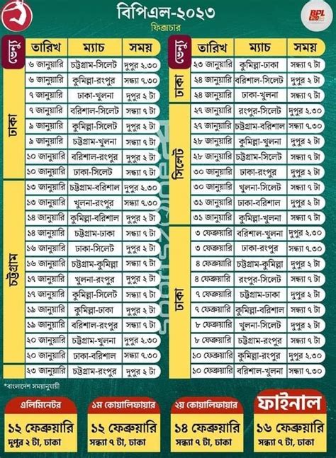 The BPL 2024 match schedule has been meticulously planned to accommodate all the excitement and high-octane action. The opening match will set the tone for the tournament, followed by a series of thrilling group stage encounters. The knockout stage will then determine the cream of the crop, culminating in the grand finale that will crown the BPL 2024 champions.